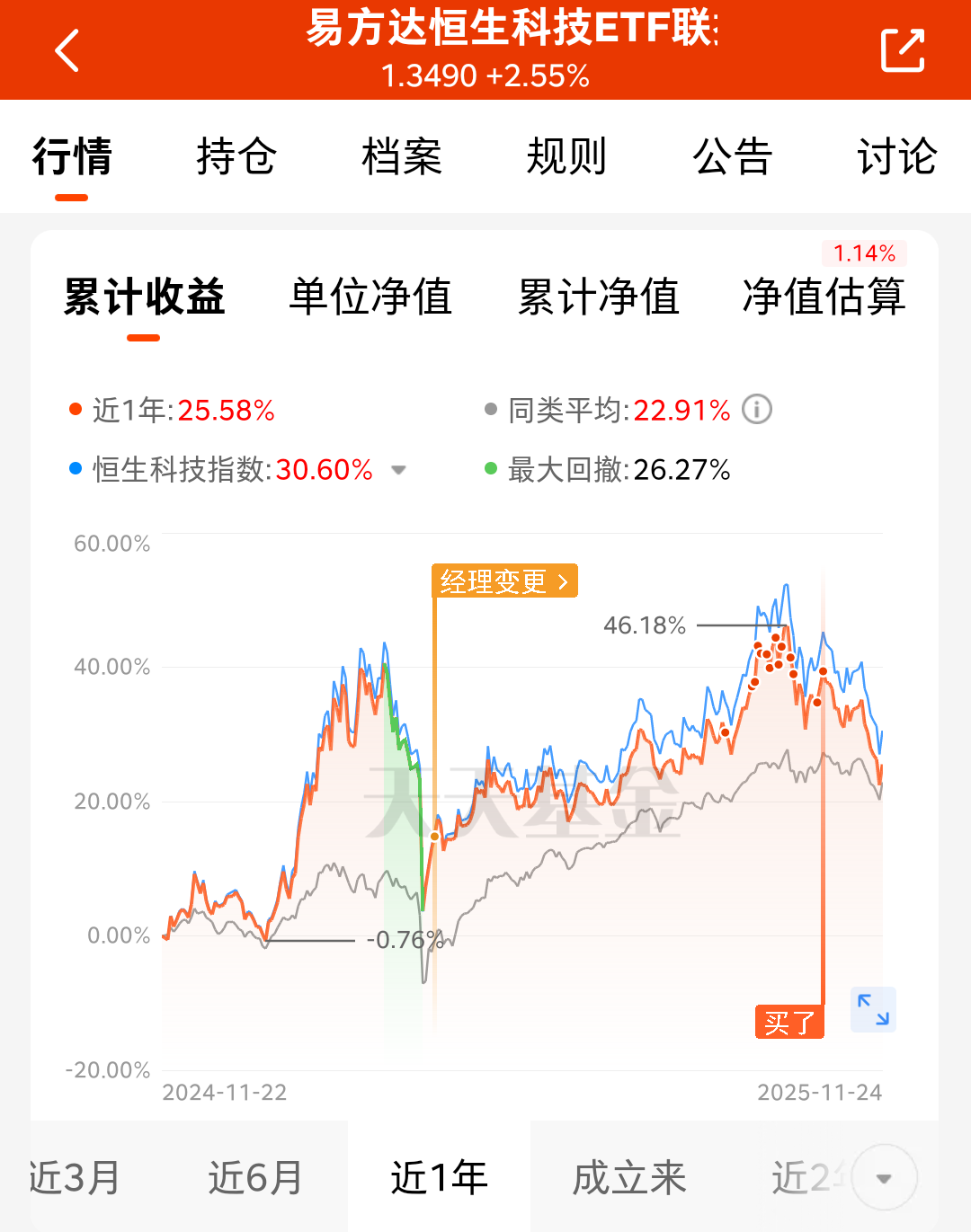 今天股市行情反弹啦。而港股对全球流动性更加敏感,恒生科技作为人工智能产业链中的应用层,比较适合布局呢,我选易方达恒生科技ETF联接(QDII)C,目前港股估值处于低位,上涨空间更大。