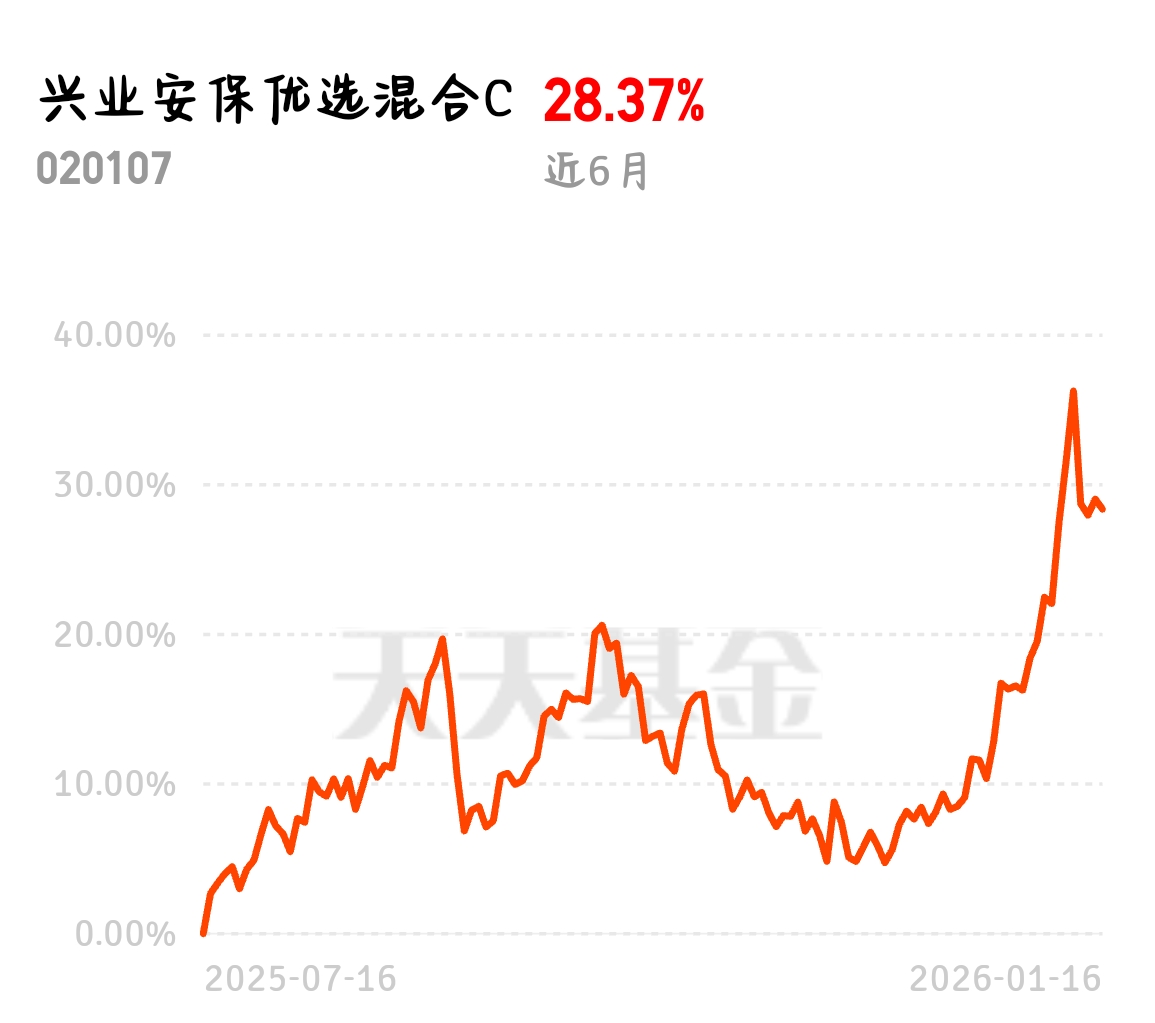 2026 年慢牛行情明显,风控好才能赚长久,兴业安保优选混合 C 攻防兼备,近 6 月 28.37% 收益,安保今天比卫星还红,主动管理控制回撤,长期持有更安心。$兴业安保优选混合C$