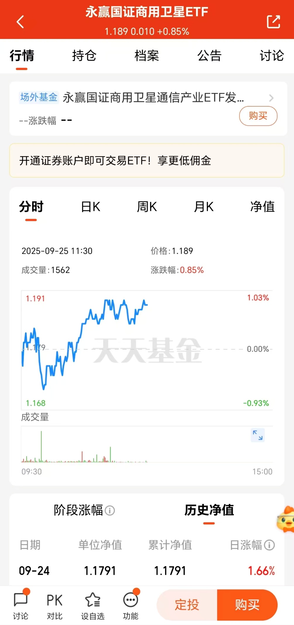 今天开盘卫星概念盘中拉升。永赢国证商用卫星ETF和$永赢国证商用卫星通信产业ETF发起联接C$(A:024194;C:024195)今天同步上涨,正是长远布局良机,这也是全市场首支且同类规模最大的卫星基。