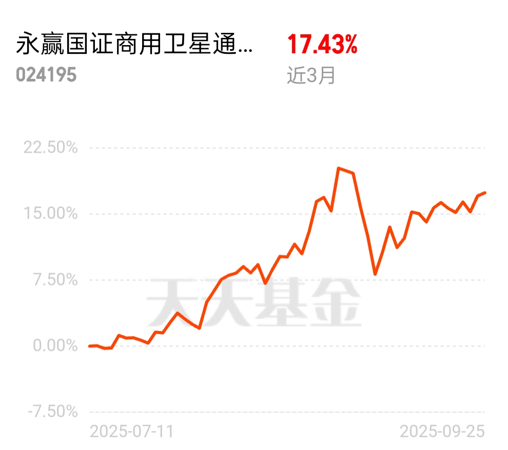 $永赢国证商用卫星通信产业ETF发起联接C$专注于卫星互联网赛道, 昨天涨幅0.32%,连涨二天,成立以来涨17.43%,目前看走势良好,加自选了。$永赢国证商用卫星通信产业ETF发起联接C$
