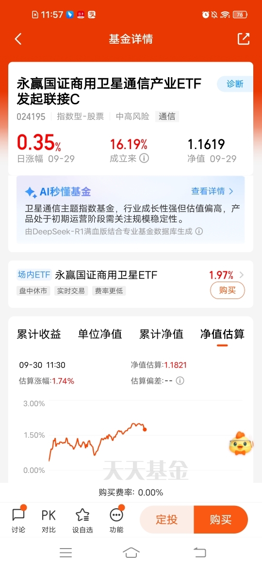 $永赢国证商用卫星通信产业ETF发起联接C$ 昨天涨幅0.35%,成立以来累积涨幅16.19%,卫星ETF涨幅比卫星产业ETF要高。深空经济的概念比商业航天更广、更“深”,但无可置疑的是,商业航天为深空经济的发展提供了极强的内在推动力。卫星互联网正迎来历史性发展机遇,中长期也是值得期待的。#牛市旗手回归?券商板块异动拉升#