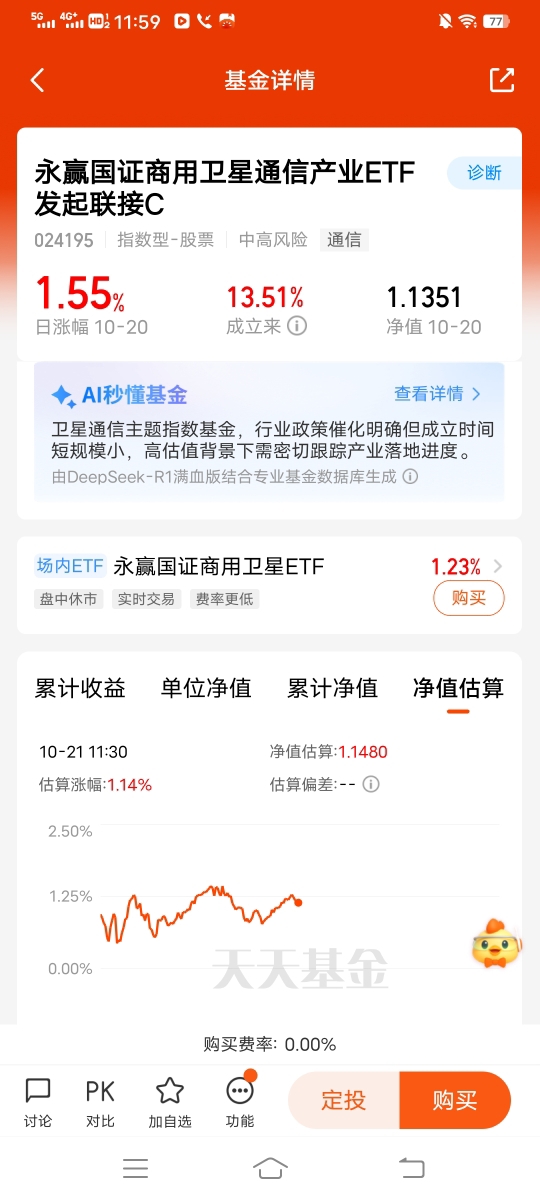 今天盘中科技领头拉涨,$永赢国证商用卫星通信产业ETF发起联接C$昨晚大涨1.5