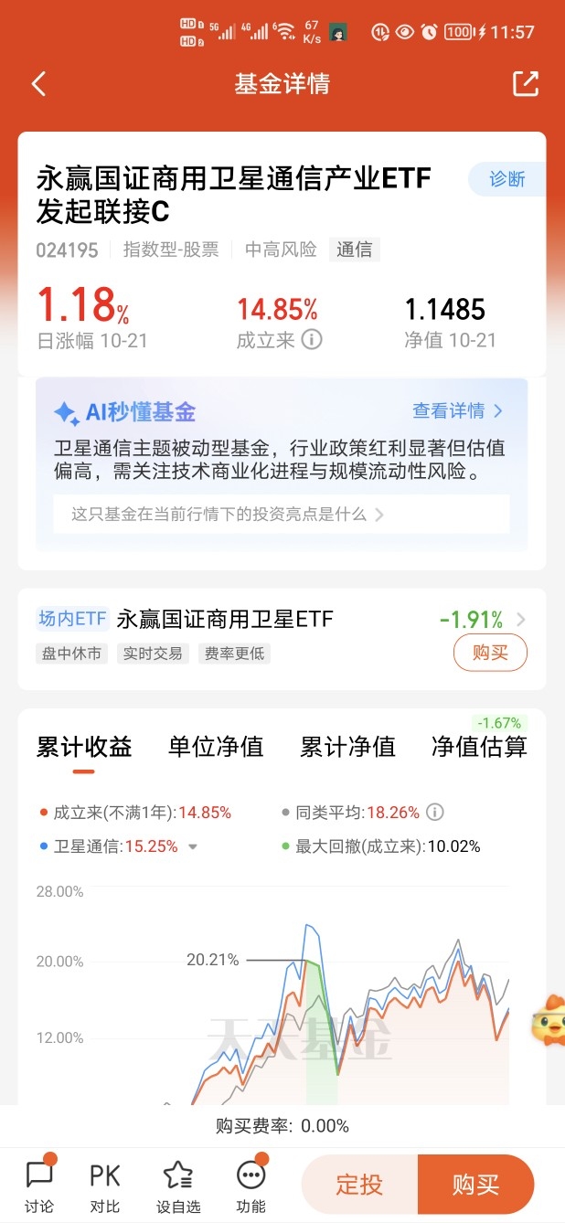 作为全市场首只且规模最大的卫星主题ETF,它的场内联接基金$永赢国证商用卫星通信