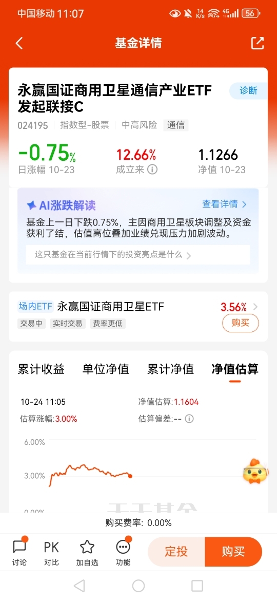 $永赢国证商用卫星通信产业ETF发起联接C$今天又是大涨的一天呀,成立以来涨幅已
