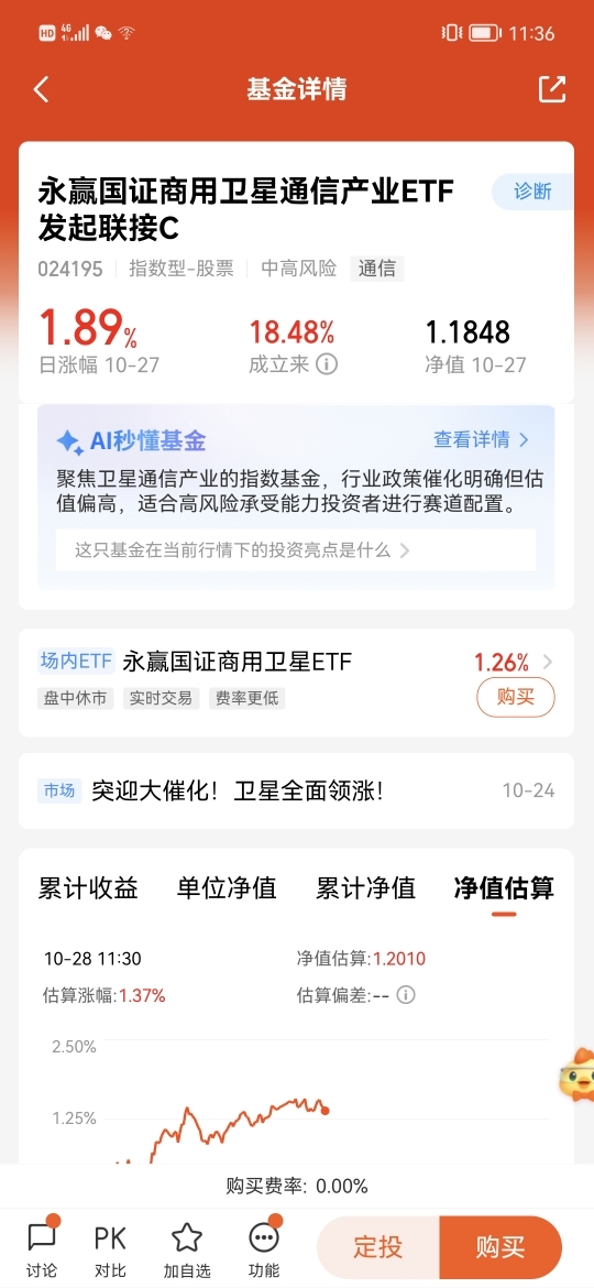 $永赢国证商用卫星通信产业ETF发起联接C$ 直接跟踪国证商用卫星通信产业指数,覆盖从卫星制造、通信服务到终端应用的全产业链。是全市场首只且规模最大的卫星主题ETF。昨天上涨1.89%,成立以来18.48%的涨幅,业绩表现还不错。看好卫星互联网长期发展的可以趁回调布局起来,相信后市可期。#沪指盘中突破4000点!下个目标位在哪?#