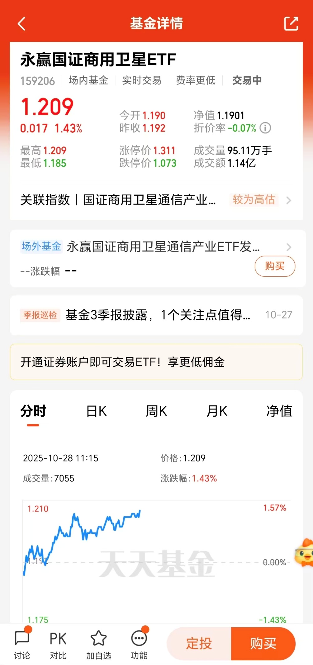 未来还有两万多颗卫星等待发射,可见规模空间巨大,全市场首只、规模最大的永赢国证商用卫星ETF和$永赢国证商用卫星通信产业ETF发起联接C$(A:024194;C:024195)今天再次上涨超1%,实现3连涨,成为投资者布局该赛道的核心抓手。