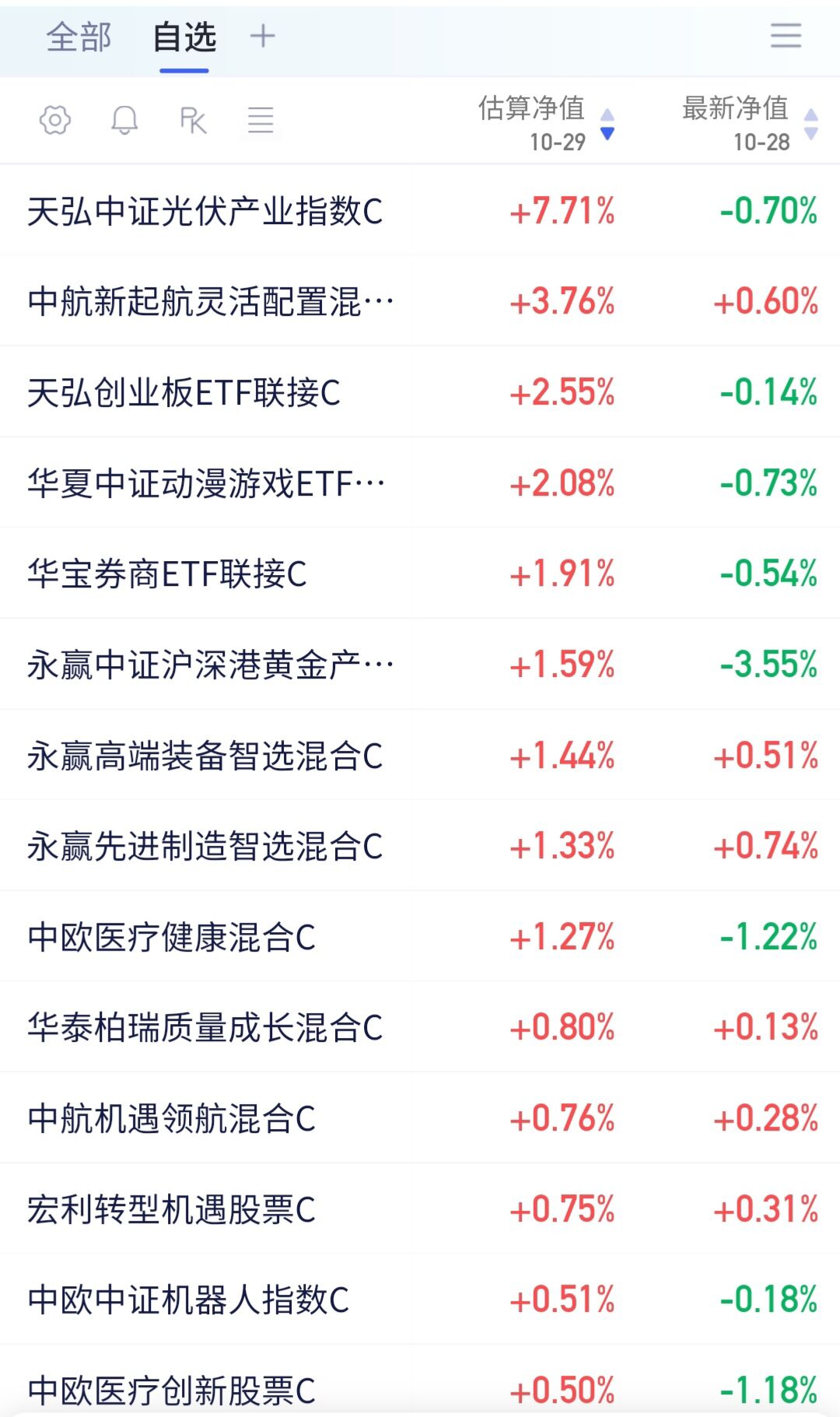 以下是部分基金实时估值:13:51分数据