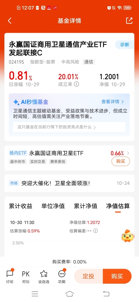 $永赢国证商用卫星通信产业ETF发起联接C$趋势不错,提前布局起来,昨天涨幅0.