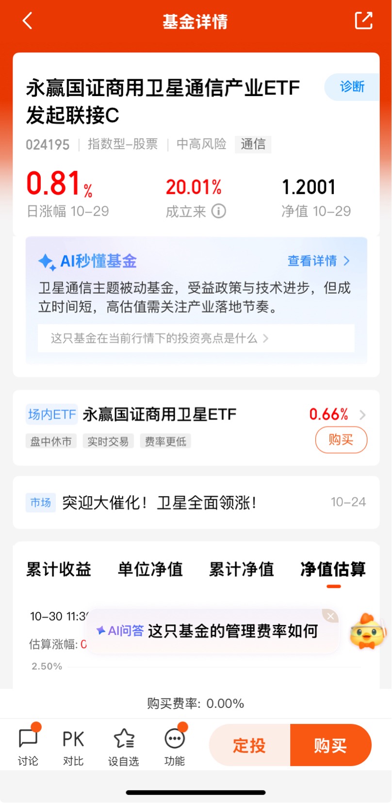 $永赢国证商用卫星通信产业ETF发起联接C$昨天上涨0.81%,近一周收益5.7
