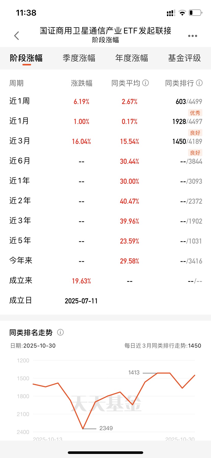 $永赢国证商用卫星通信产业ETF发起联接C$ 五天四涨,近一周涨了6.19%,同类平均2.67%涨幅,业绩表现优秀,状态不错呀! 这里是一只聚焦卫星通信主题ETF链接基金,跟踪的卫星ETF是全市场首只、稀缺性比较强,未来不久,中国移动、中国电信、中国联通三大运营商将共同竞逐卫星通信赛道,值得期待了!#科技热点摊开业啦#