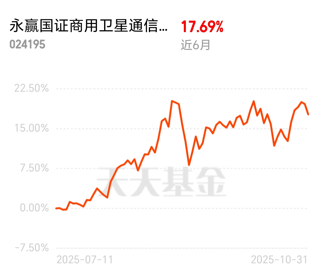 $永赢国证商用卫星通信产业ETF发起联接C$ 紧密跟踪商用卫星通信指数,覆盖卫星制造、通信、导航等核心领域,契合国家战略新兴产业发展方向。 看业绩,成立115天,收益17.69%,目前,卫星互联网赛道行情正在起步阶段,我准备择机配置起来。$永赢国证商用卫星通信产业ETF发起联接C$