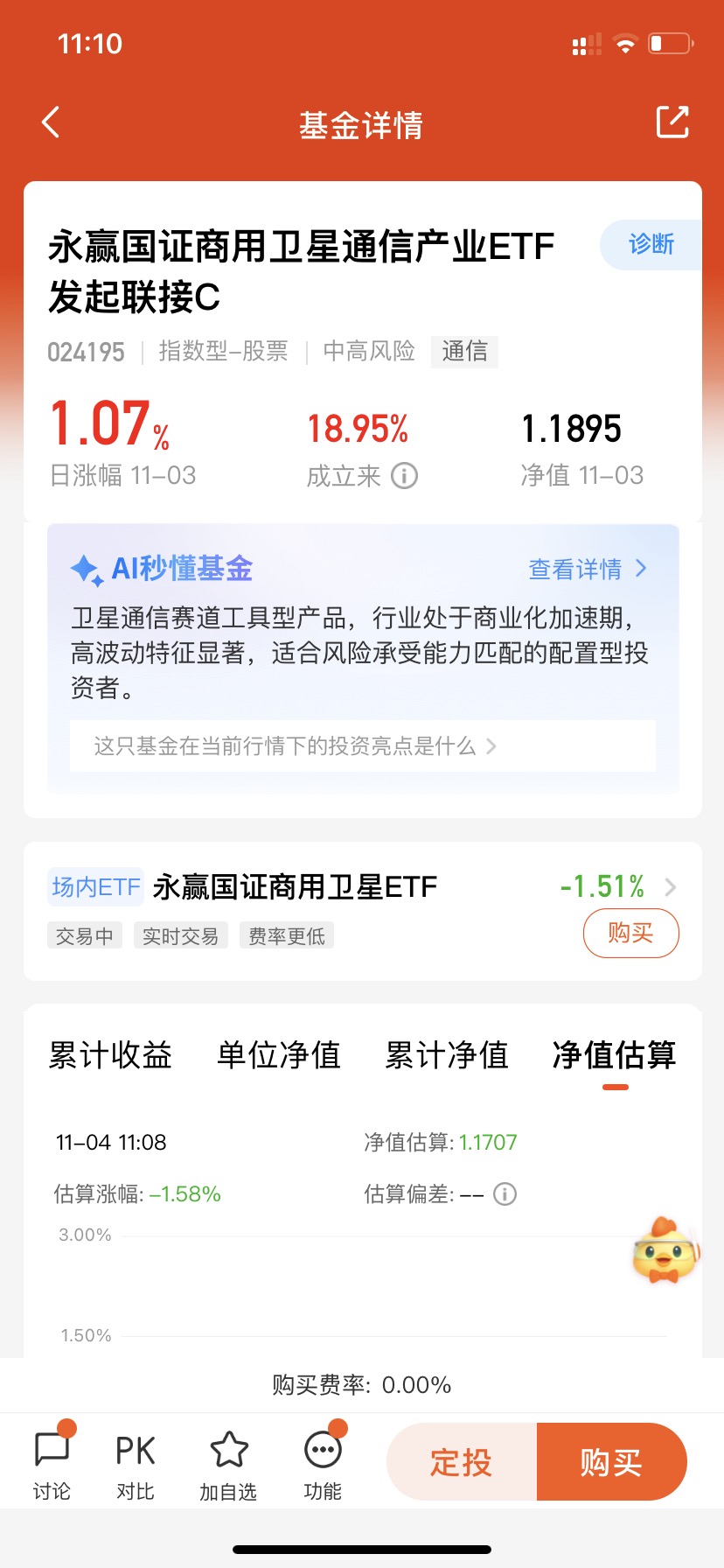 $永赢国证商用卫星通信产业ETF发起联接C$ 昨天涨了1.07%,七天五涨,状态还不错!刚成立不久,从这里的净值表现来看,这里回撤控制的还是不错的,还是蛮抗波动的一个!这里重点关注卫星通信产业,卫星互联网作为商业航天中发展最成熟的分支之一,是新一代通讯技术的核心方向,值得期待了!#科技热点摊开业啦#