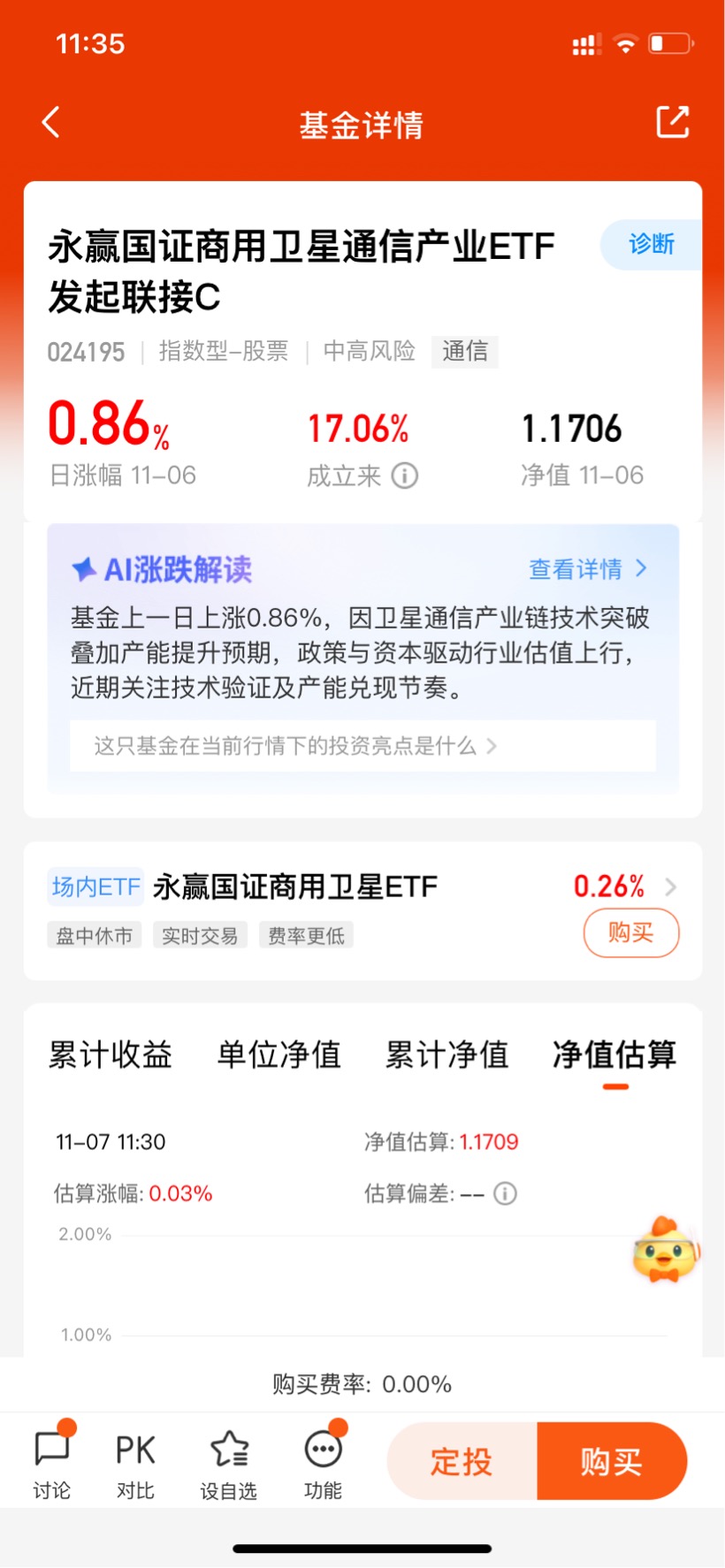 $永赢国证商用卫星通信产业ETF发起联接C$ 昨天涨了0.86%,这里是一只聚焦卫星通信主题ETF链接基金,跟踪的卫星ETF是全市场首只、稀缺性比较强的,成长性也很高,卫星互联网作为商业航天中发展最成熟的分支之一,是新一代通讯技术的核心方向, 卫星互联网领域具备万亿空间,值得期待了!#科技热点摊开业啦#