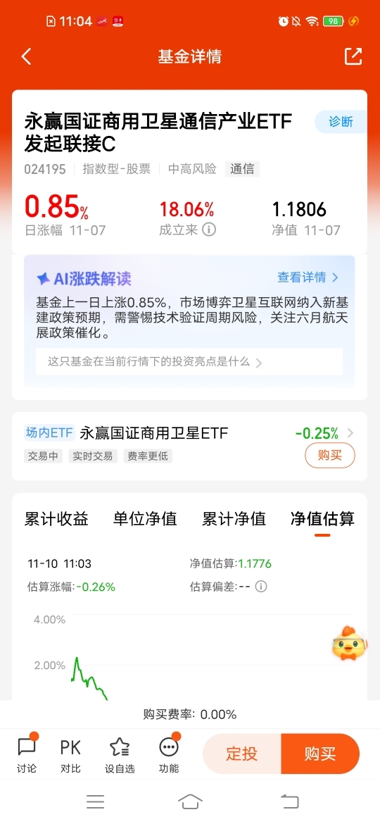 $永赢国证商用卫星通信产业ETF发起联接C$ 上周五涨幅0.85%,成立以来累积涨幅18.06%,卫星ETF涨幅比卫星产业ETF要高。深空经济的概念比商业航天更广、更“深”,但无可置疑的是,商业航天为深空经济的发展提供了极强的内在推动力。卫星互联网正迎来历史性发展机遇,中长期潜力赛道,更值得期待。#年轻人 我们为什么存不下钱?#