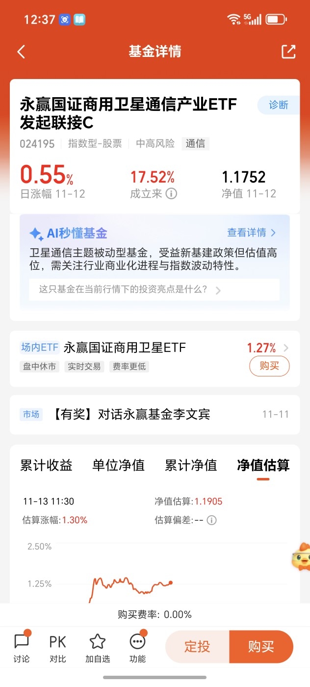 $永赢国证商用卫星通信产业ETF发起联接C$ 是全市场首只、规模最大的卫星主题ETF,昨天上涨0.55%,近三个月涨8.49%,成立以来17.52%的涨幅,业绩表现还不错。当卫星通信从专业领域走向大众消费,提前布局的投资者将见证一个新基建时代的到来,我跟了,有一起的嘛?#科技小登大揭秘#