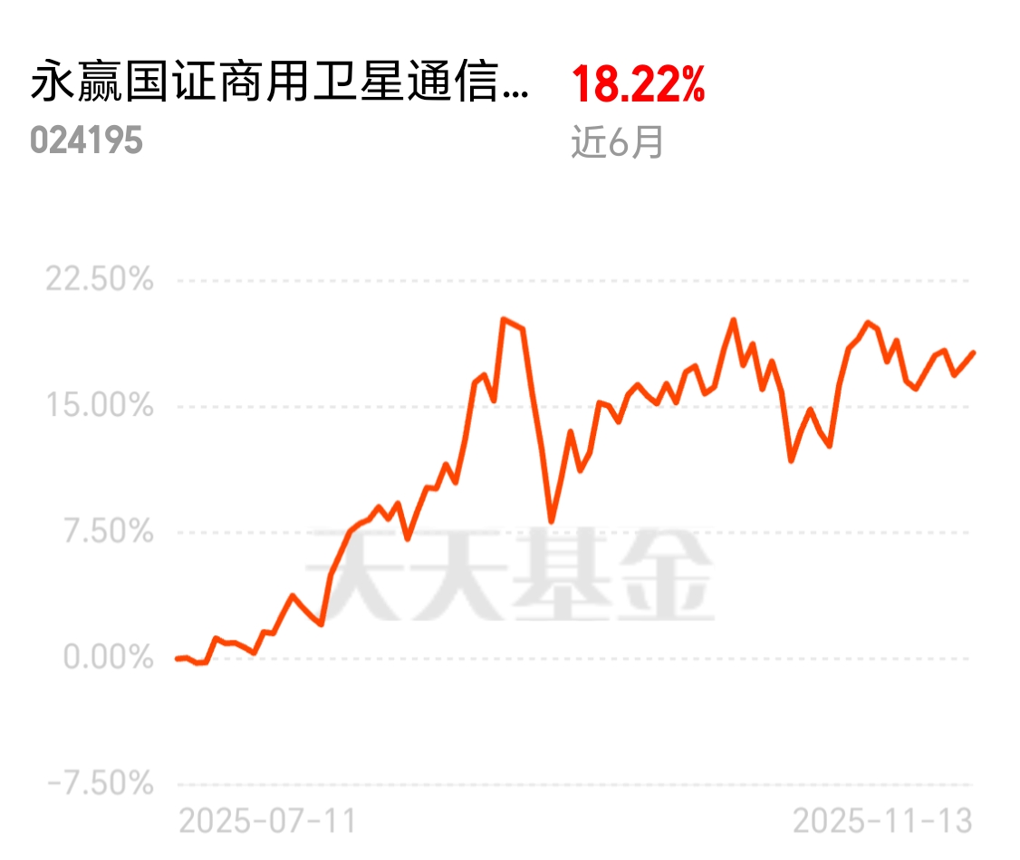 $永赢国证商用卫星通信产业ETF发起联接C$ 紧密跟踪商用卫星通信指数,覆盖卫星制造、通信、导航等核心领域,契合国家战略新兴产业发展方向。昨天涨0.60% ,成立以来,收益18.22%,同类排名靠前,目前,卫星互联网赛道行情正在起步阶段,趁今天市场倒车接人,上车了。