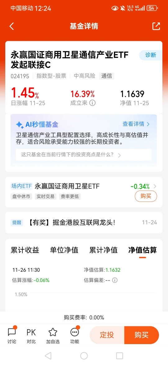 $永赢国证商用卫星通信产业ETF发起联接C$ 是一只聚焦卫星通信主题ETF链接基金,跟踪的卫星ETF是全市场首只、稀缺性比较强的,昨天涨了1.45%,状态不错呀!这里刚成立不久,从净值表现来看,这里波动小,回撤控制的还是蛮给力的!目前板块估值仍处于低位,还是很值得期待了!#银行股逆势走强!行情逻辑是什么?#