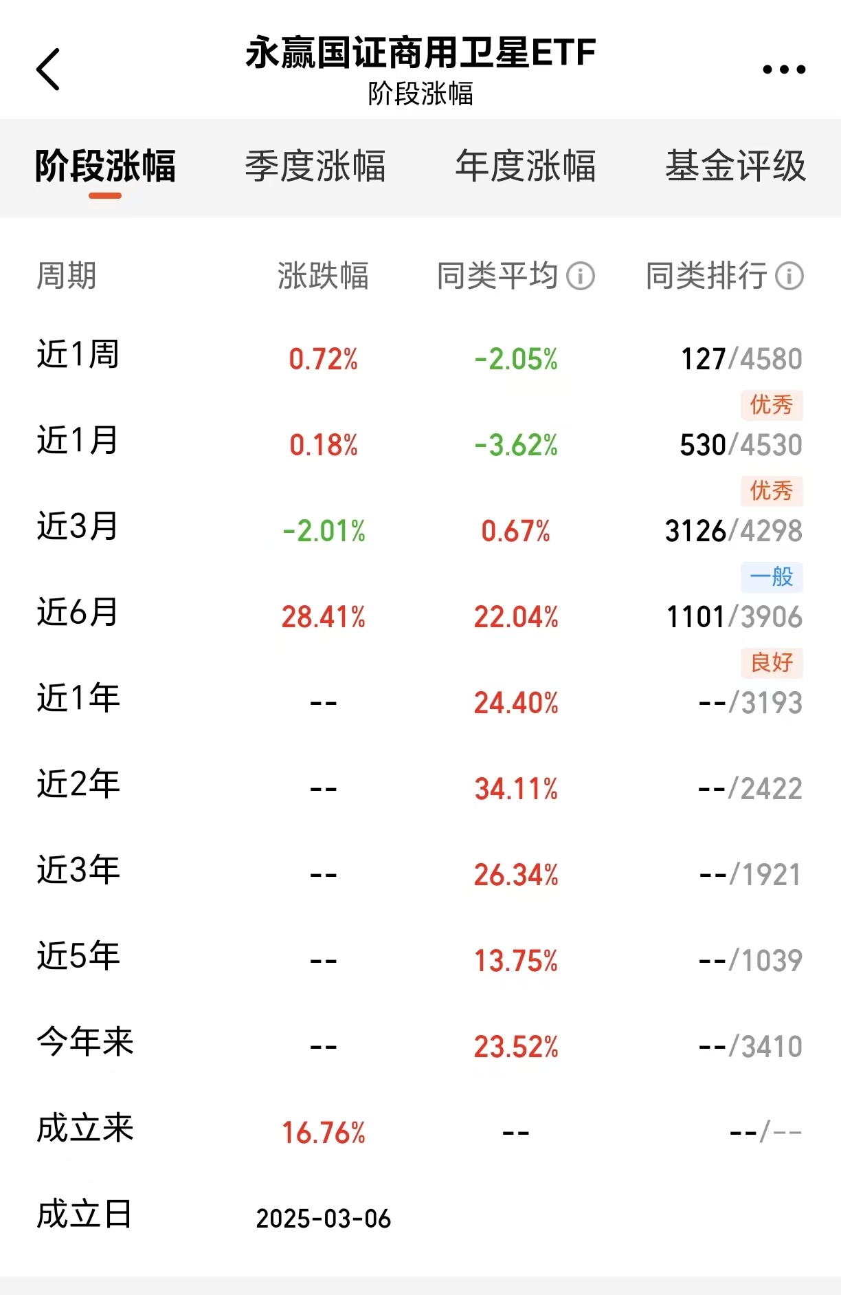 从资料上看,永赢卫星ETF(159206)以国证商用卫星通信产业指数为跟踪标的,全面覆盖卫星制造、发射服务、通信运营及终端应用等环节,精准锚定产业链核心环节。成立以来,产品通过精细化运作与行业深度布局,业绩表现突出:近6月收益率达28.41%,自成立以来累计收获16.76%的回报,持续引领卫星主题投资风潮。