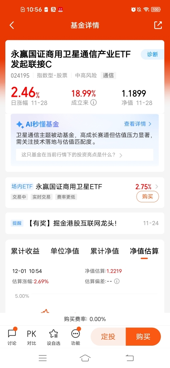 $永赢国证商用卫星通信产业ETF发起联接C$近一周涨幅7.44%,成立以来累积涨