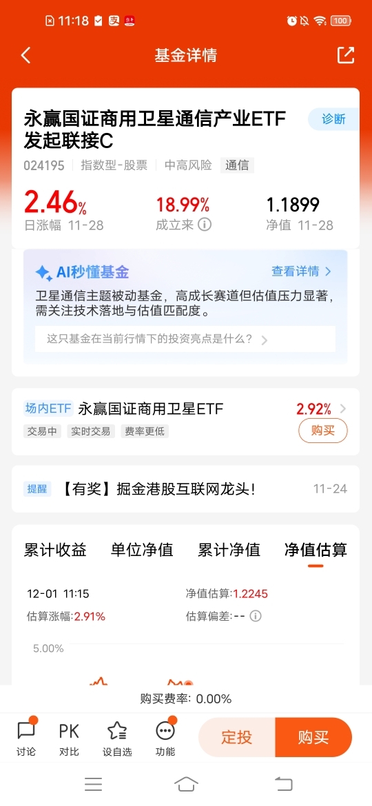 $永赢国证商用卫星通信产业ETF发起联接C$目前也是布局时机,持仓涨幅不错,近一