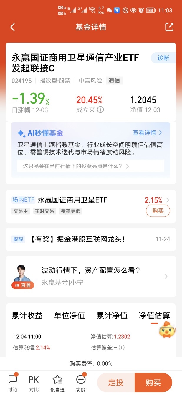 反弹时刻到来,$永赢国证商用卫星通信产业ETF发起联接C$ 目前的估值涨超两个点,展望后市,在政策支持加码、核心技术持续突破的背景下,以卫星、火箭、遥感应用等为代表的商业航天产业正在驶入规模化发展的快车道。今年4季度,多款大型民营商业火箭首飞在即,国内火箭运力瓶颈有望缓解,当前国内卫星产业已经临近关键拐点,其科技成长和自主可控属性凸显,后市可重复使用火箭首飞等事件催化可期#机构:看好“春季行情”提前开启#