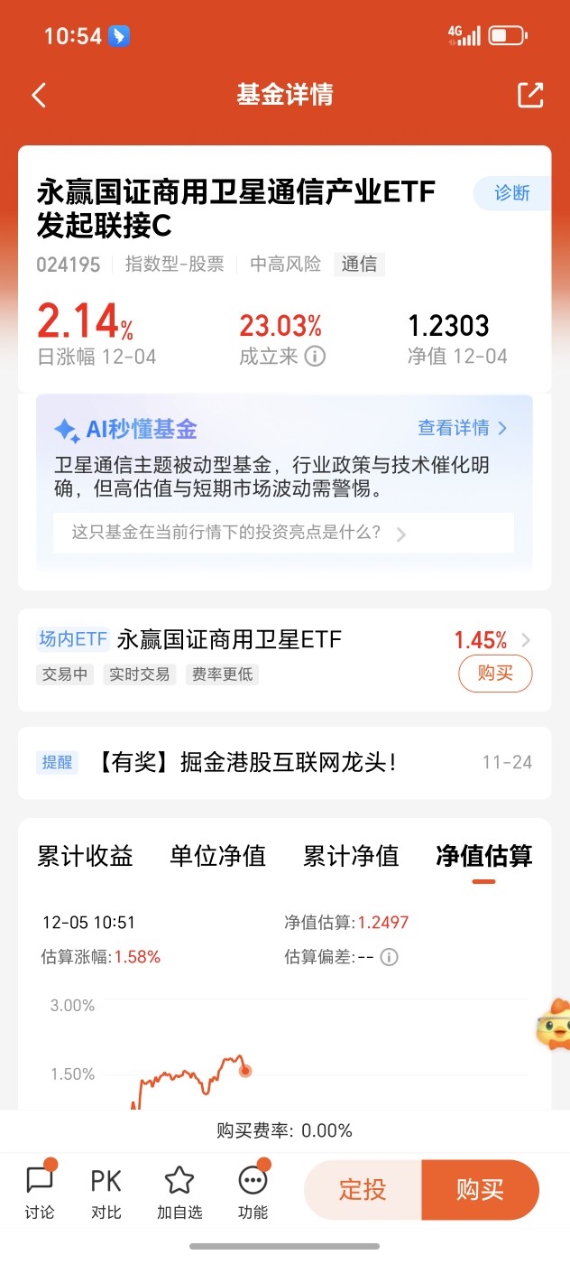 $永赢国证商用卫星通信产业ETF发起联接C$ 紧密追踪国证商用卫星通信产业指数,精选了商用卫星通信产业各环节的代表性企业,从核心的卫星研制与火箭发射,到关键的地面站与终端设备制造,再到最终的运营服务,实现了对产业链条的无缝覆盖。昨天上涨2.14%,近三个月涨13.75%,成立以来23.03%的涨幅,业绩表现还不错。看好就跟上,相信后市可期。#摩尔线程开盘价650元!一签赚超26.7万#