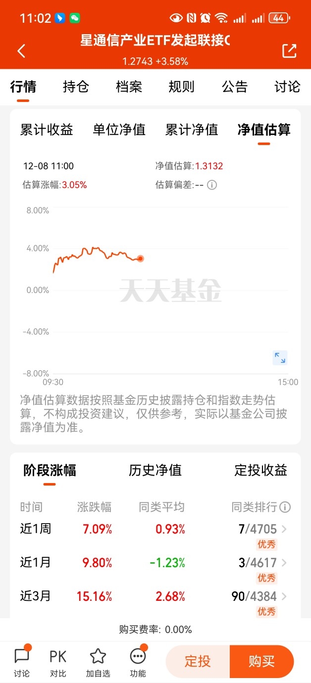 $永赢国证商用卫星通信产业ETF发起联接C$开始发威,上周五天有四天上涨,目前估