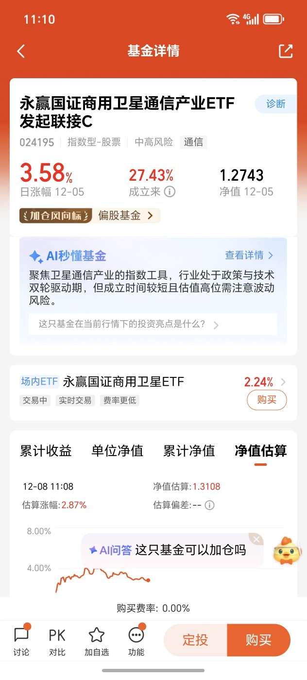 $永赢国证商用卫星通信产业ETF发起联接C$ 所跟踪的指数与卫星互联网发展方向契合度更高,集中度更突出。这种高集中度往往带来更大弹性,能在行业上行周期中更敏锐地捕捉增长红利,为投资者创造超额收益空间。上周五大涨3.58%,成立以来27.43%的涨幅,今天也是继续大涨,业绩表现太给力了。卫星互联网产业步入快速发展期,前景广阔,看好的抓紧跟上,逢低布局也不错。#券商行业迎利好:杠杆上限“松绑”#
