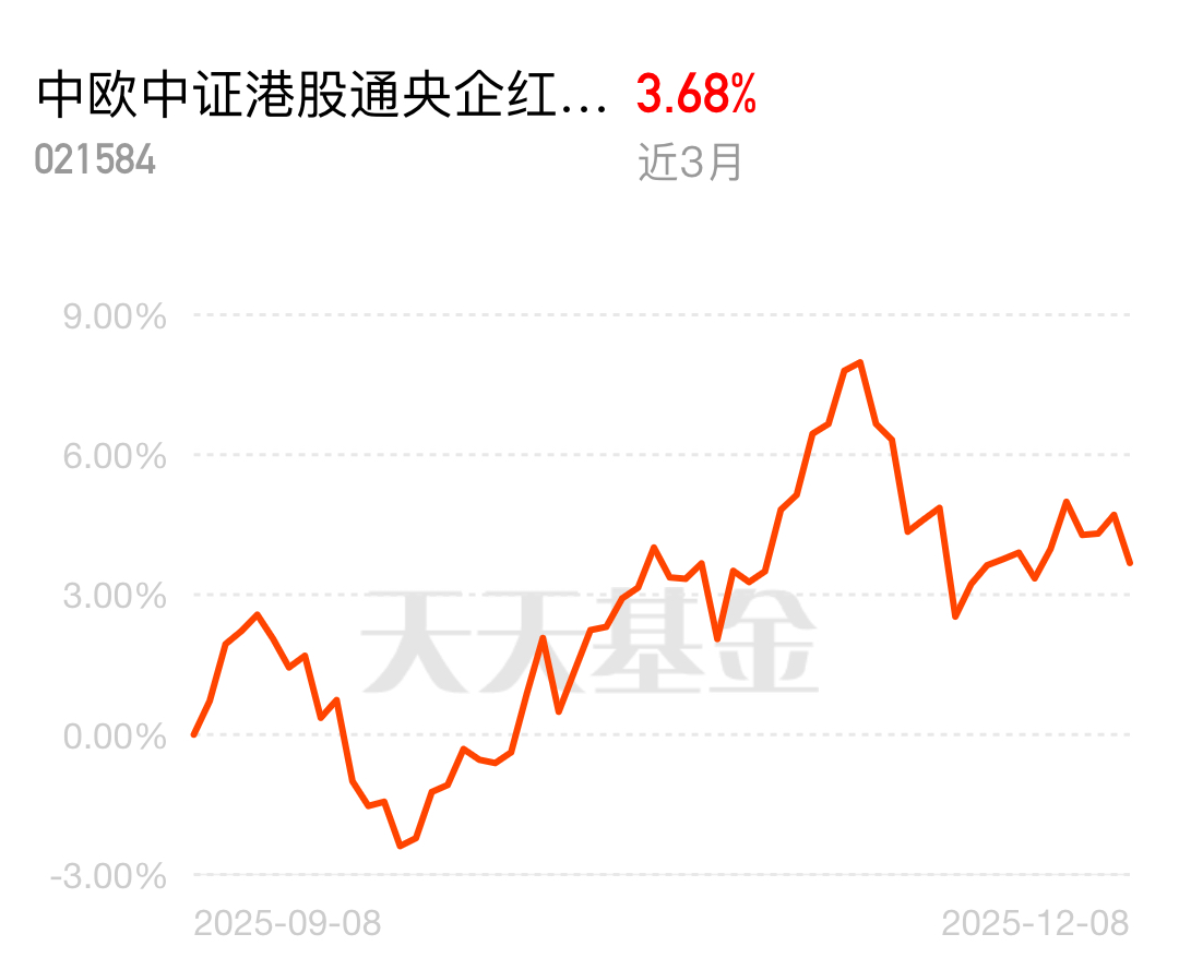 资产荒选稳定收益!中欧港股通央企红利C,高股息+低估值,政策推动分红,保险+南向
