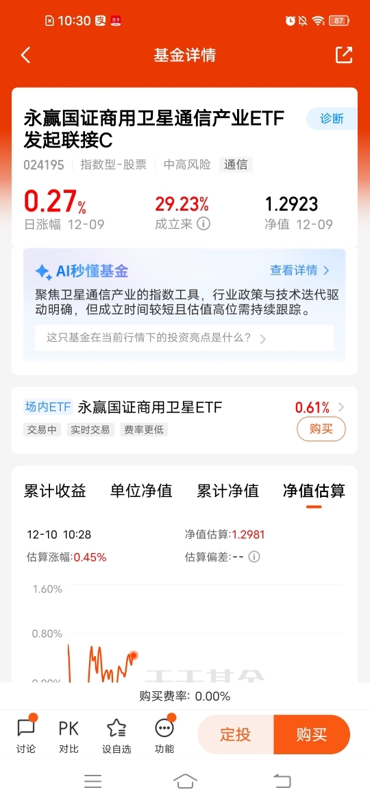 $永赢国证商用卫星通信产业ETF发起联接C$目前估值收涨,当下收集点筹码也是时机