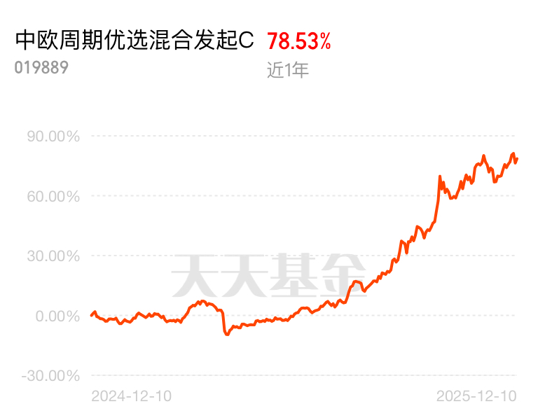 12 月 LME 铜价涨幅超 4%,工业金属强势反弹,周期资源品成为市场香饽饽。中欧周期优选混合发起 C 近 6 个月 76.08%,周期资源类业绩顶尖,不管短期抓机会还是长期布局都合适。