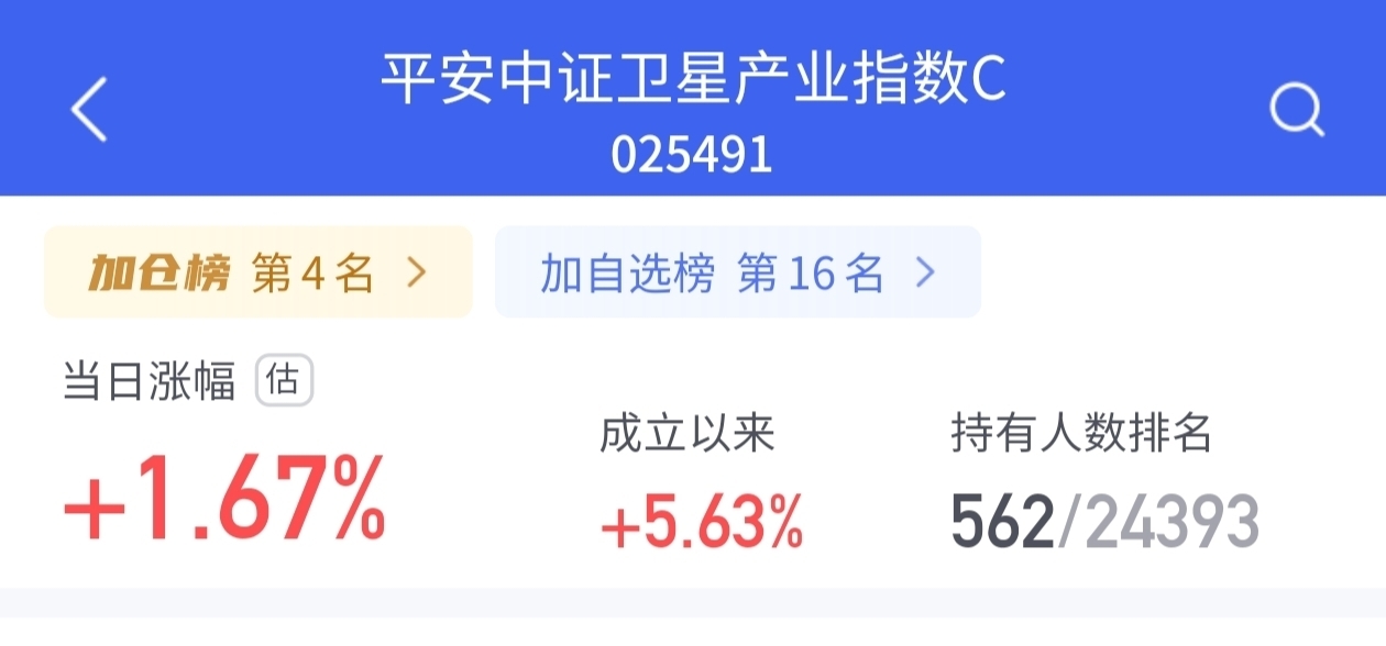 今日卫星股基估值受产业景气加持走高,低轨卫星组网加速落地,业绩增长预期支撑估值,机构持仓稳步提升。$平安中证卫星产业指数C$ 估值上涨1.67%