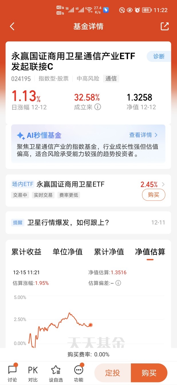 目前估值拉升,$永赢国证商用卫星通信产业ETF发起联接C$势头强劲,已经连涨7天