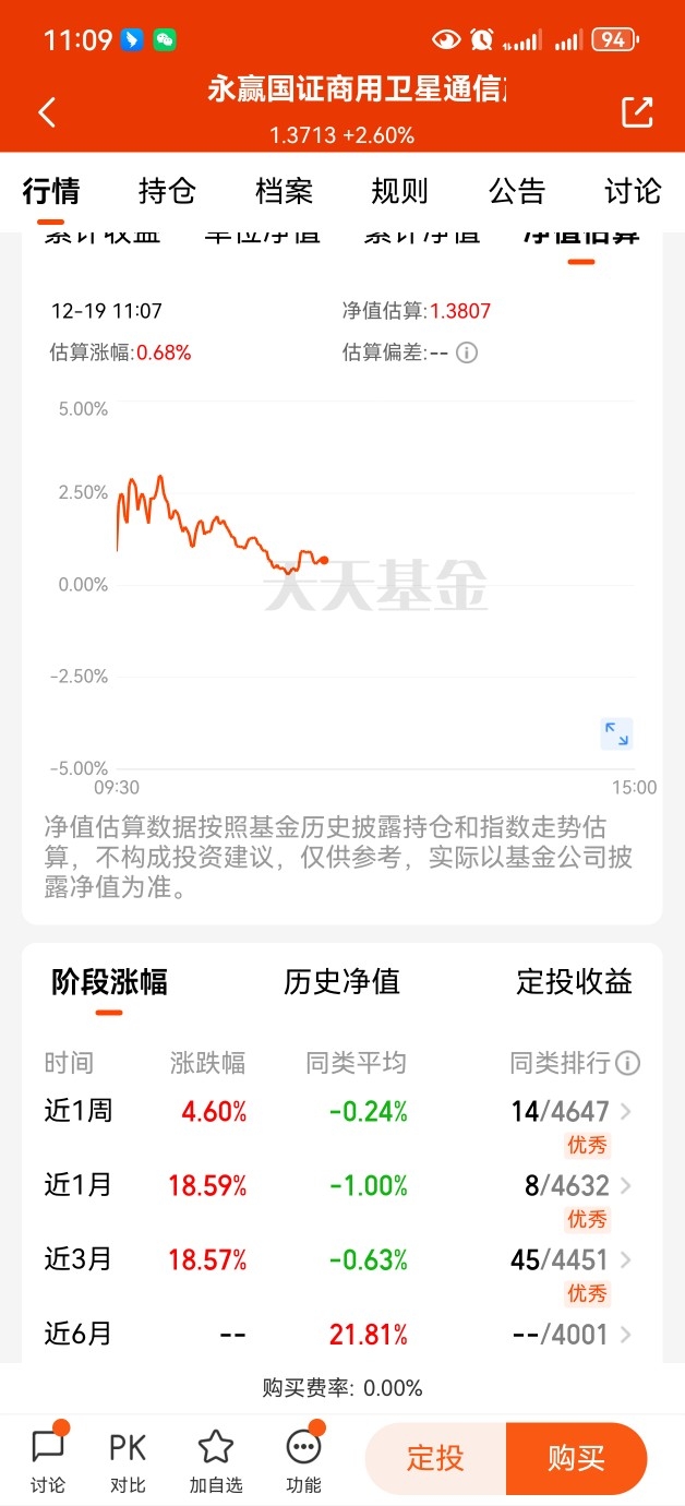 $永赢国证商用卫星通信产业ETF发起联接C$今天这是要继续连涨的节奏,近一周涨幅