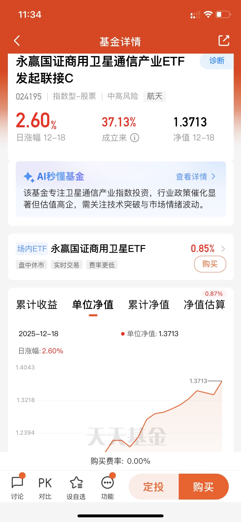 $永赢国证商用卫星通信产业ETF发起联接C$ 昨天涨了2.60%,近一周涨超18%,同类平均−1.00%,业绩表现远超同类平均表现,各个阶段收益率在同类排名前1%,可谓是优秀亮眼的很了!这里是一只卫星通信主题被动性基金,跟踪的卫星ETF是全市场首只、稀缺性比较强的,最近卫星通信产业政策支持和技术面利好挺多的,值得期待了!#2025即将收官 明年怎么投?#