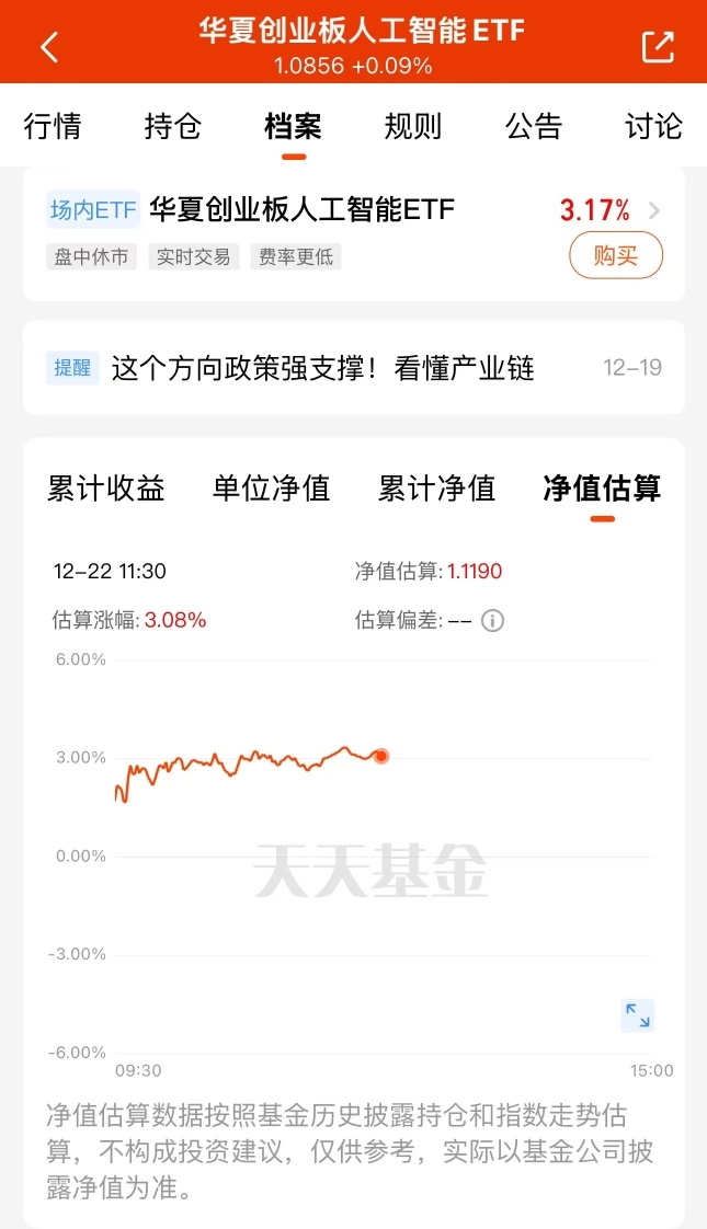 上周布局了一直观望的$华夏创业板人工智能ETF发起式联接C$,今天上涨3%+,场