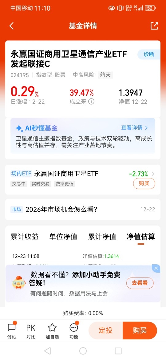 $永赢国证商用卫星通信产业ETF发起联接C$ 紧密跟踪国证商用卫星通信产业指数,是市场中布局卫星赛道最早、运作经验最丰富的ETF产品,加之卫星赛道商业化进程加速,其成立以来累积涨幅39.47%,作为全市场首只聚焦商用卫星通信基,深度受益于低轨卫星互联网加速部署的红利。中长期值得期待的潜力赛道。#长征十二号甲可复用火箭首飞引发关注#