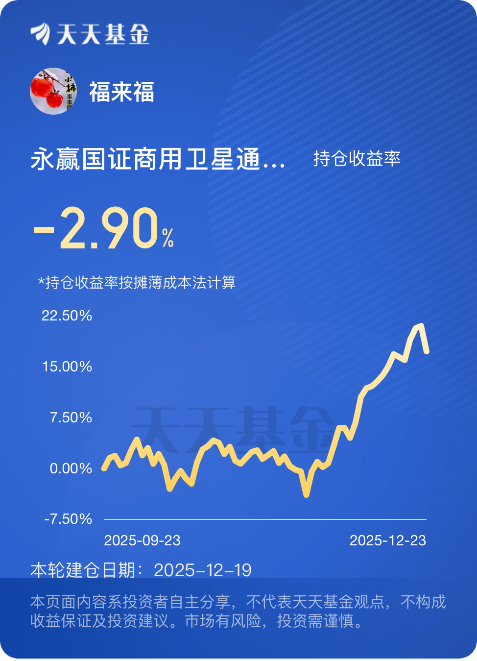昨天大跌,以未来可期,买入持有,但起伏很大,看看今天适度调整,未来方向肯定值得期待,只是前行的脚步要用科技力量去慢慢丈量,相信大有可期……$永赢国证商用卫星通信产业ETF发起联接C$ #晒收益#