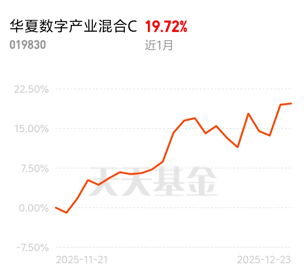 商业卫星这两天调整了,还得是算力方向。这几天走势强的优点可怕,主线迹象非常明显了。华夏数字产业混合C(019830),业绩太炸裂了,近1年收益率118.93%,同类才30.3%,