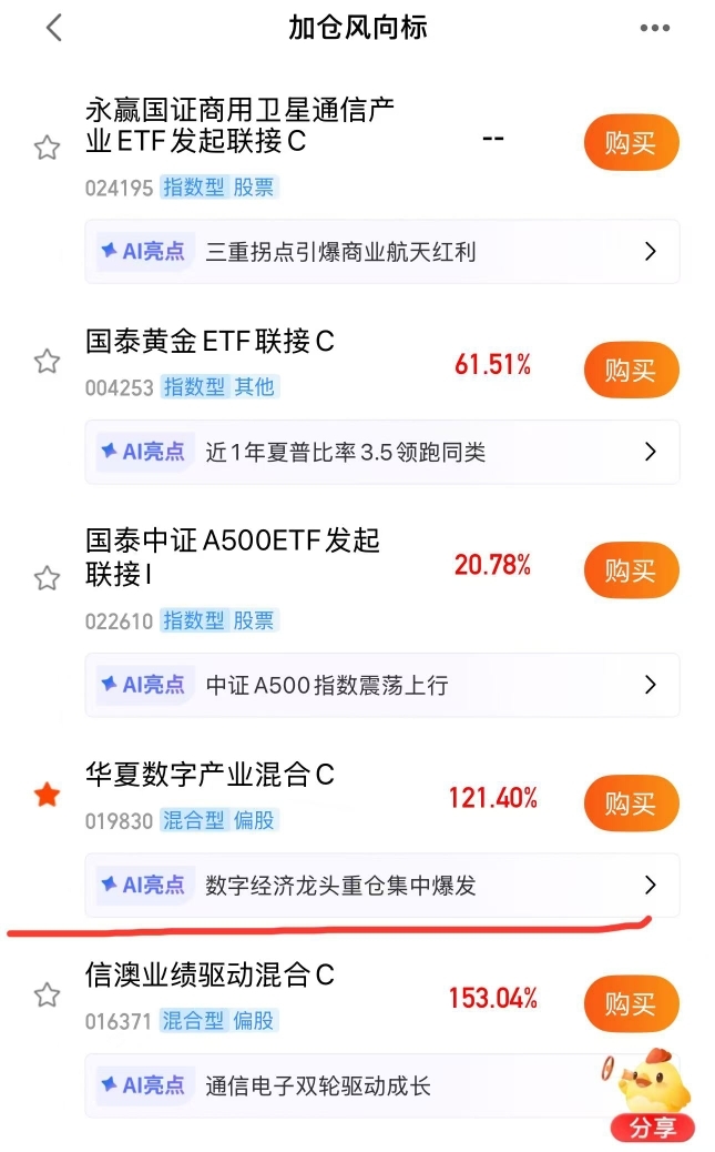 当前连红3天,今天继续上扬,近一年收益121%+同类排名前30,$华夏数字产业混合C$短期长期的吸金能力都算的上是榜上有名,今天继续上榜加仓风向标,这还不得拿住看长期呀