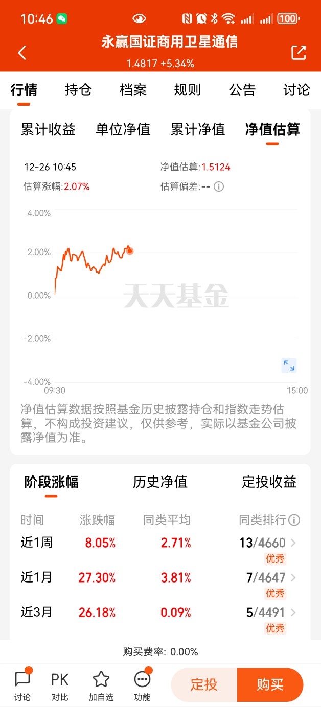 $永赢国证商用卫星通信产业ETF发起联接C$昨天大涨+5.34%,目前估值又是两