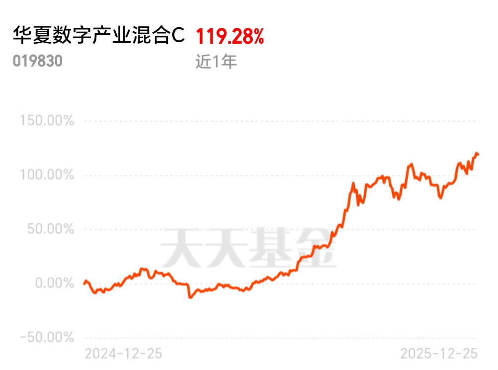 回调 0.66%,华夏数字产业混合 C(019830)的性价比又上来了,近 1 年119.28%的收益,杠杠滴!