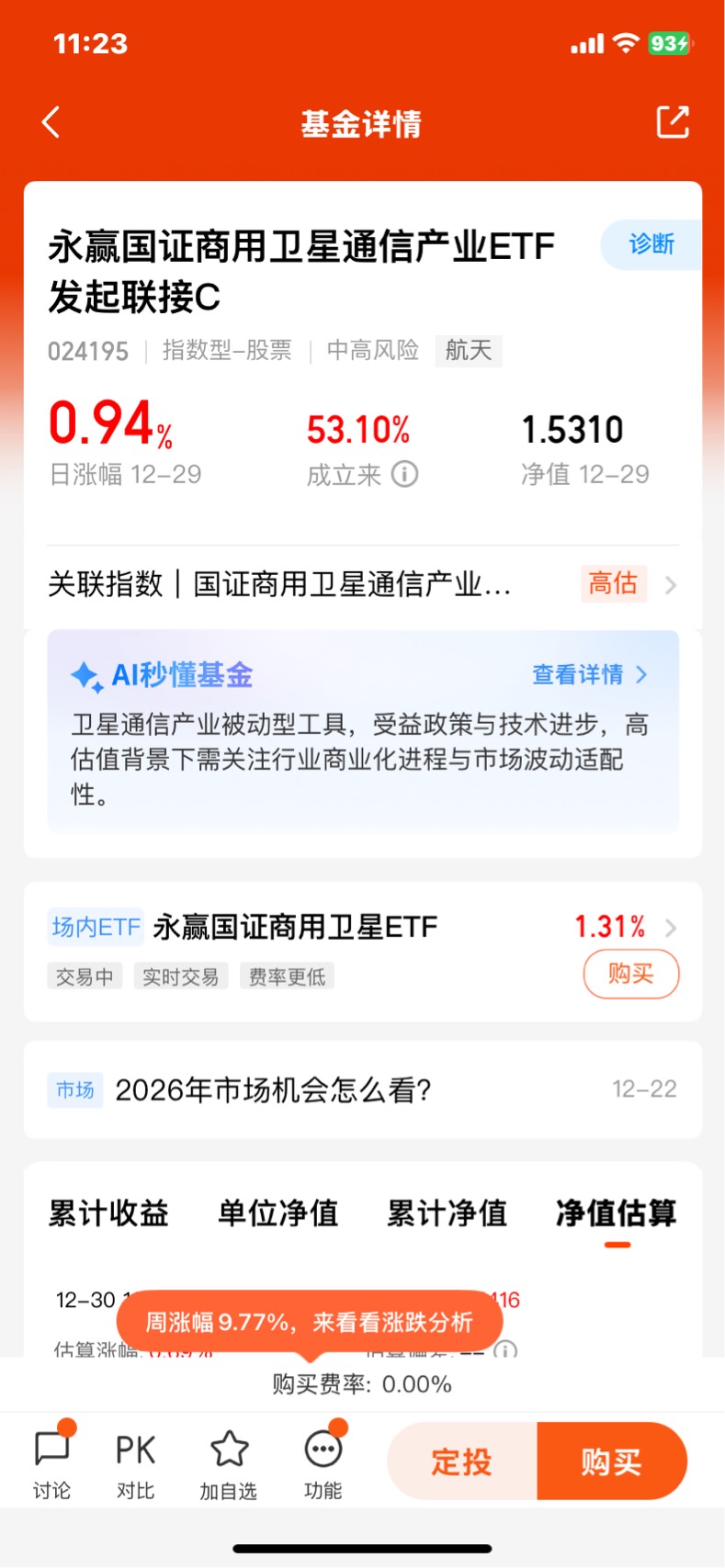 #商业航天赛道爆火:2026年行业或迎质变#$永赢国证商用卫星通信产业ETF发起联接C$ 昨天上涨0.94%,已经连涨4天涨幅超过12个点,近一周收益9.77%,近一个月收益28.67%,近三个月收益31.77%,成立5个多月收益超过53个点,各阶段的业绩在同类中均排名前十,作为行业首支且唯一聚焦卫星互联网产品的指数基金,精准聚焦商用卫星领域,精准把握卫星互联网建设核心赛道,与国家战略方向高度契合;受益于国家对卫星互联网、低轨卫星星座的政策支持,以及全球卫星产业的高速增长,长期发展潜力大。