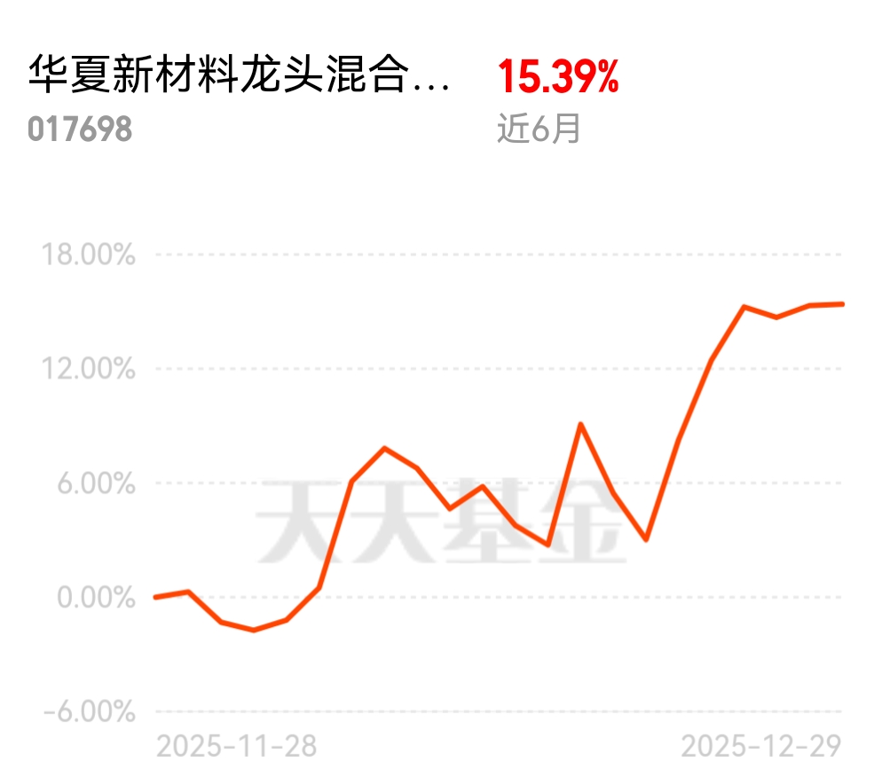 相信2026年的AI算力+新能源转型+高端制造三大趋势向好,这基近6个月收益35%,1个月的收益超15%,单日涨幅能超5个点,聚焦的AI新材料弹性大,短期爆发力强,业绩也都优秀,今天给机会抓紧冲吧$华夏新材料龙头混合发起式C$