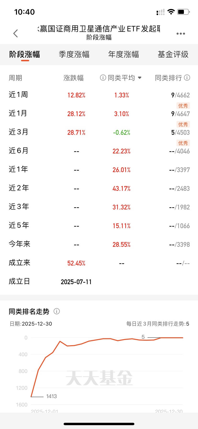 最近市场虽有调整,但是也有少数板块跑出了超额收益,其中商业航天卫星通信板块就是比较突出的一个!$永赢国证商用卫星通信产业ETF发起联接C$ 是一只跟踪高成长性卫星通信指数的基金,这里刚成立不久,业绩表现还是不错的,近一周涨超12%,近一个月涨超28%,在四千多同类中名列前茅,可见业绩弹性很强,期待接下来更好的表现了!#2025年A股沪指收盘点位大猜想#