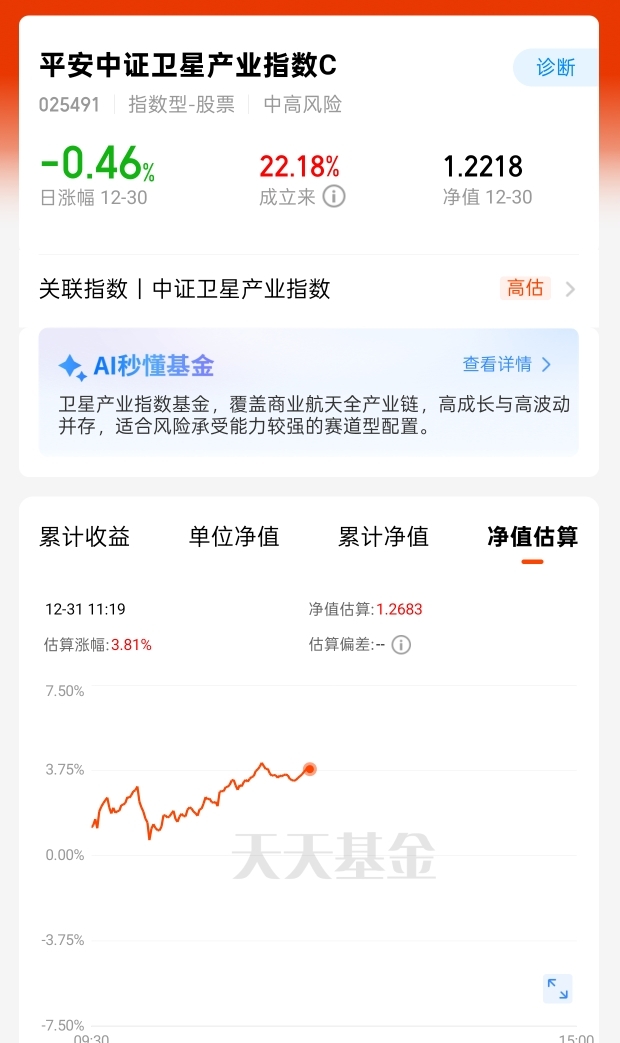 平安中证卫星产业C盘中估值大涨3.81%,对比同类优势更突出,覆盖商业航天全产业链更有潜力!
