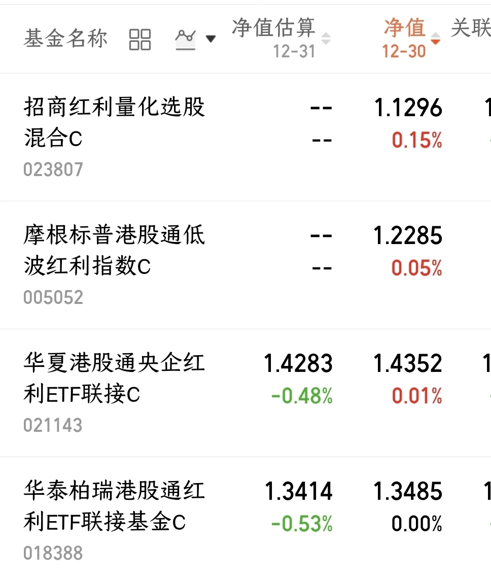 华夏港股通央企红利ETF联接C昨日上涨0.01%