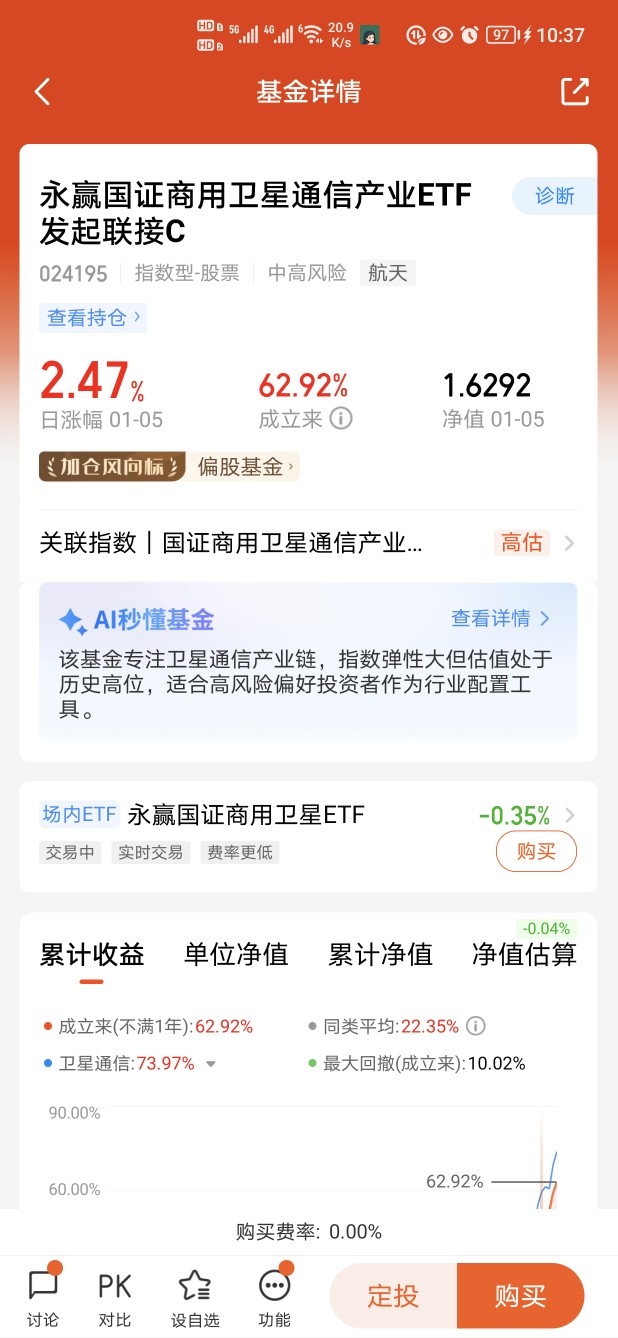 展望后市,在政策支持加码、核心技术持续突破的背景下,以卫星、火箭、遥感应用等为代表的商业航天产业正在驶入规模化发展的快车道,$永赢国证商用卫星通信产业ETF发起联接C$ 布局正合适。当前国内卫星产业已经临近关键拐点,其科技成长和自主可控属性凸显,后市可重复使用火箭首飞等事件催化可期。成立以来,涨幅已经超过62个点,爆发力还是很不错的。#13连阳!沪指再刷十年新高#