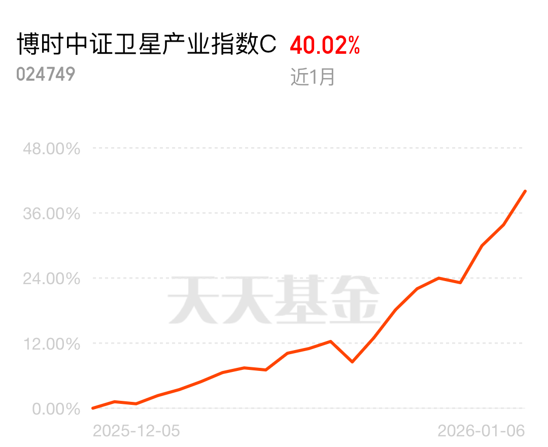 $博时中证卫星产业指数C$覆盖卫星制造、发射、应用全产业链50家龙头,不仅涨幅更