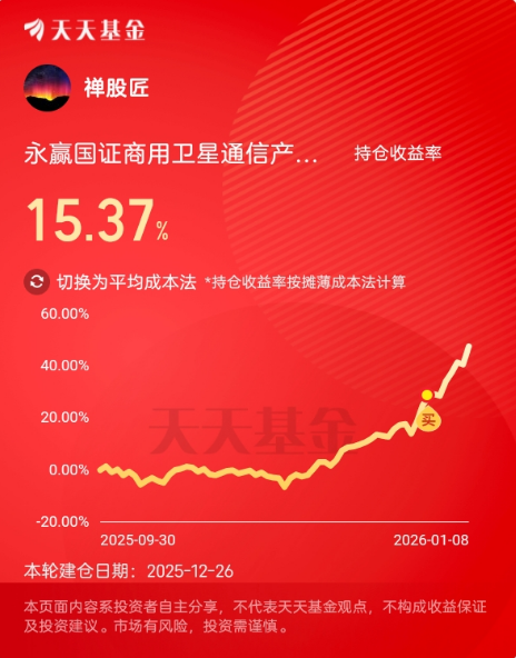 $永赢国证商用卫星通信产业ETF发起联接C(OTCFUND|024195)$更绝,成立不久就卡位行情,半年净值飙75%,2026年四天又涨10.06%。年前加仓,收益就超15%,心情很捧!感谢@永赢基金